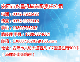 安陽市永昌機械有限責任公司:位于安陽市龍安區華祥路南頭3號院,公司現有職工100余人,其中工程技術人員35人,職能機構設置為:生產部、技術質檢部、供銷部、財務部、辦公室和鑄鋼車間、鉚焊車間、機械加工車間。